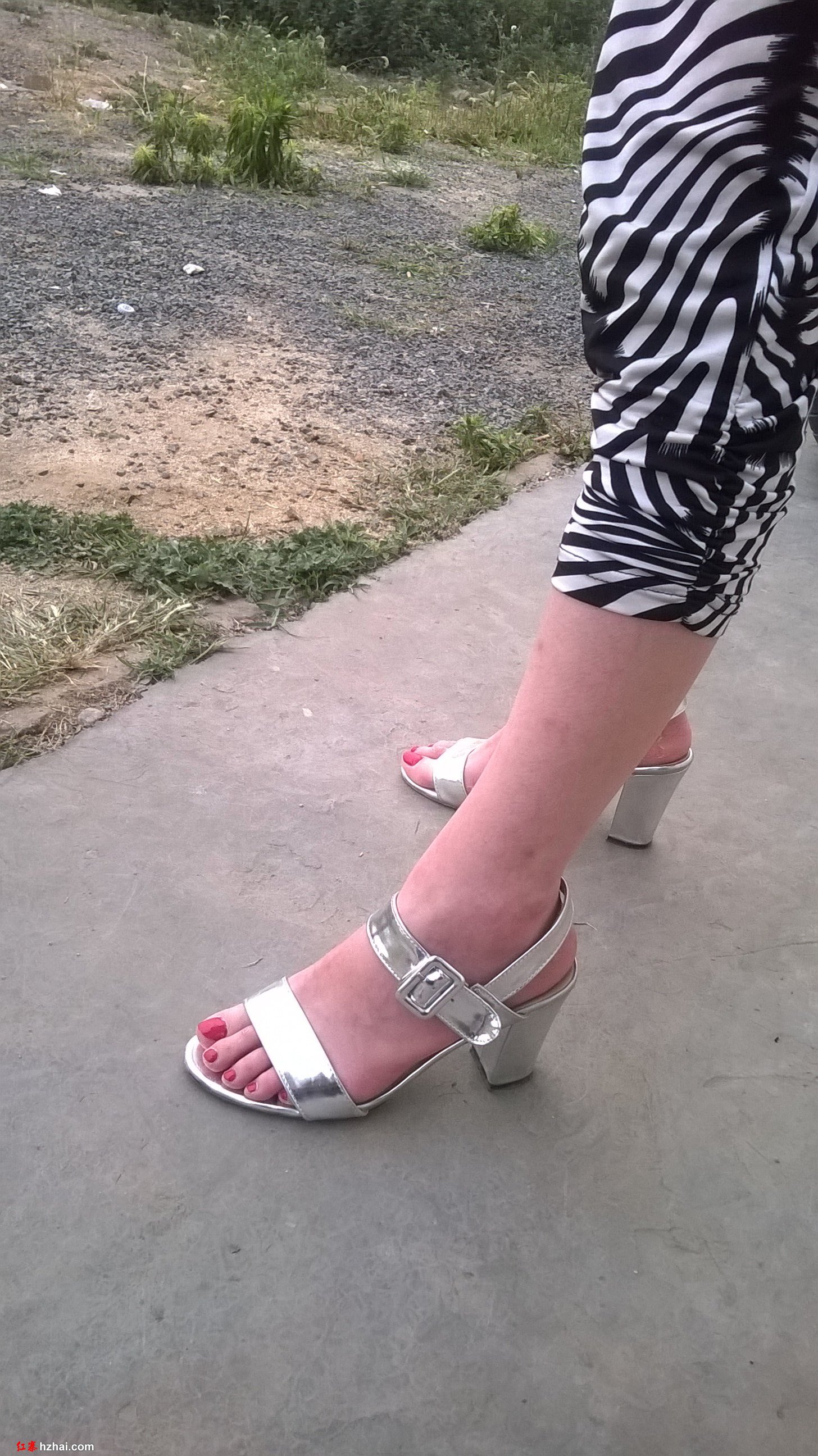 白马裤子很漂亮,修长美足红粉细腻,圆润细致,银色的高跟靓丽迷人。